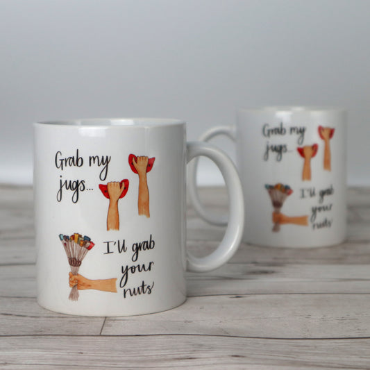 Grab My Jugs, I'll Grab Your Nuts Climbing Pun Ceramic Mug